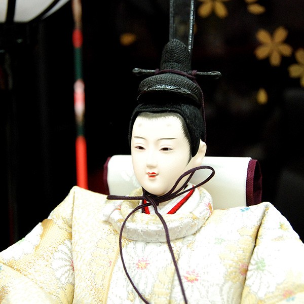 ・台座・屏風等には落ち着いた色目の雛人形セット。