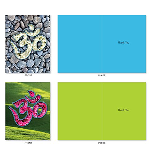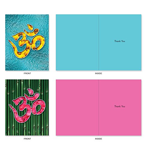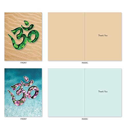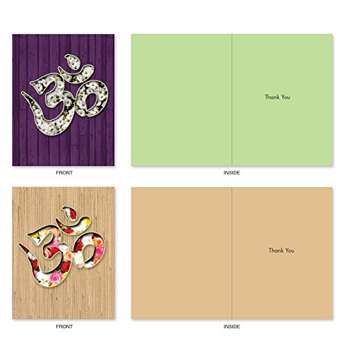 M2971 Om Blooms: 10 Assorted Thank You Note Cards Feature a Universal Symbol for Peace and Serenity, w/White Envelopes.
