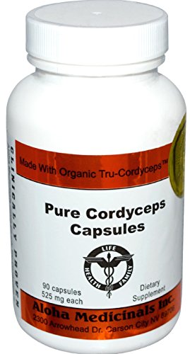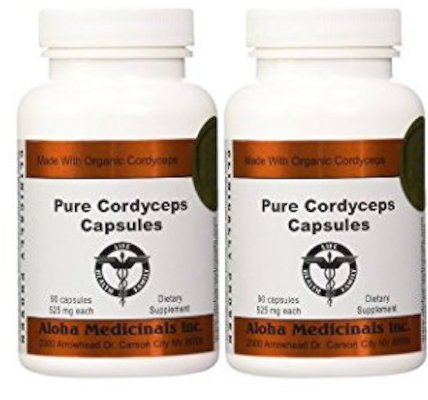 Organic Cordyceps by Aloha Medicinals - Super Potent Cordyceps Medicinal Mushrooms - 525mg - 2 bottles 90 Vegetarian Capsules