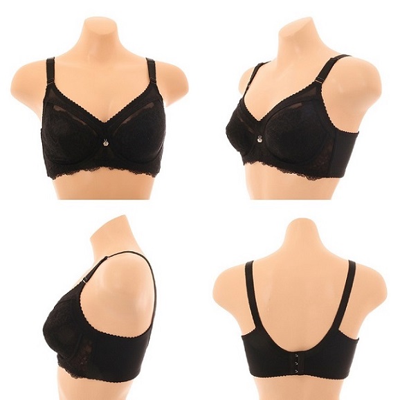 상하컵과 앞판에 레이스를 사용하여 엘레강스한 멋을 주