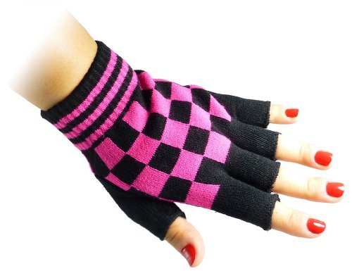 JTC Belt Unisex Half Finger Stretchy Fingerless Gloves One Size Fits Most Black & Pink Checkered