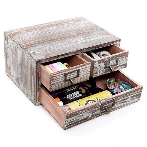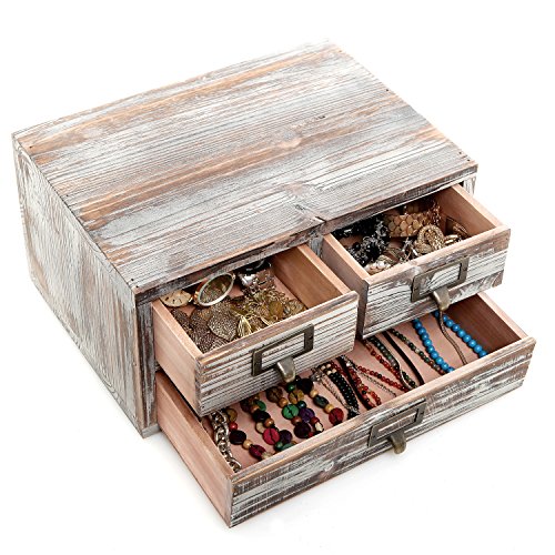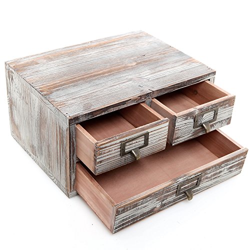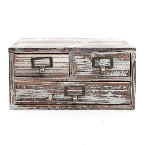 Rustic Torched Finish Wood Office Storage Cabinet / Jewelry Organizer w/ 3 Drawers, Ash Brown - MyGift