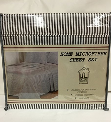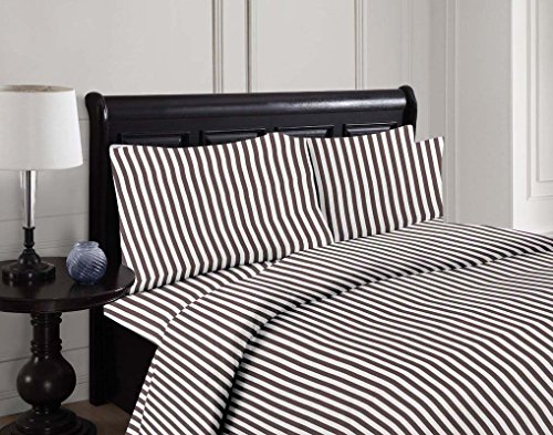 King size Printed striped 4 Piece Bed Sheet set brushed microfiber 1800 Bedding - Wrinkle, Fade, Stain Resistant - Hypoallergenic -(King, brown) By United Linens