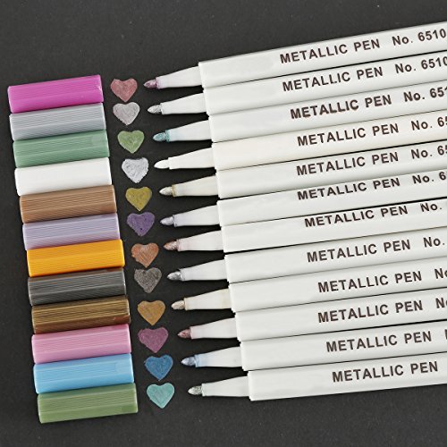 Fabric Metallic Paint Markers Pens Art Drawing Markers Set of 12 Assorted Colors for Kids Adults Gift Card Making,DIY Scrapbooking Photo Album,Rock Painting Coloring Book (12 colors)