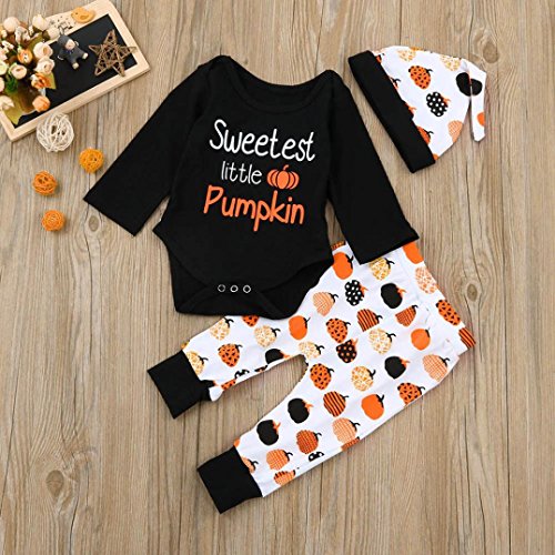 -. Brand : Odeer -. Color : Black -. Department : baby-girls -. Feature : - Material:Cotton Blend ; Clothing Length:Regular / - Pattern Type:Letter ; Sleeve length:Long Sleeve / - Collar:O-neck ; Style:Cute,fashion ; Occasion: Daily, Party / - Both hand wash and machine wash is OK / - We offer you 100% risk-free satisfaction guarantee to let you buy with confidence,free exchange and full refund when you get the wrong size. -. ProductGroup : Apparel -. ProductTypeName : BABY_COSTUME -. Title : For 6 - 24 Months Odeer (TM) Halloween Newborn Kids Baby Girls Boys Outfits Clothes Romper Tops+Pants+Hat