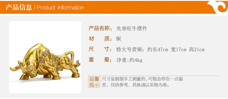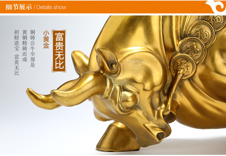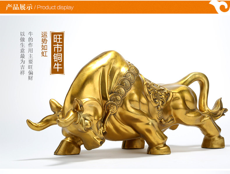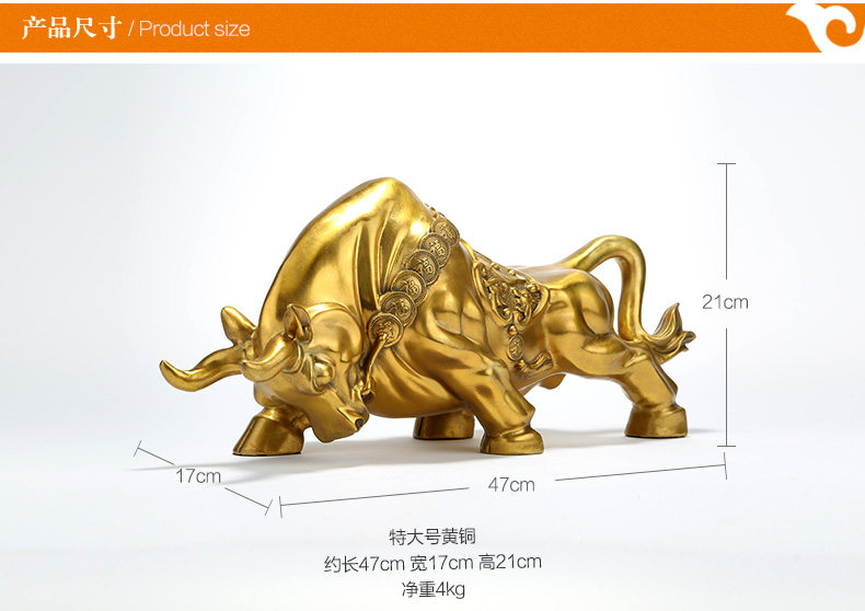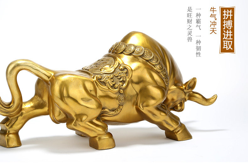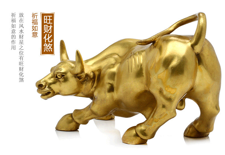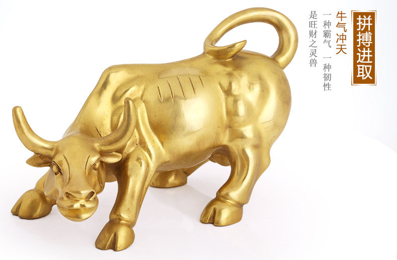 上善若水 招财铜牛礼品 华尔街牛客厅办公室纯铜牛摆件装饰品0029