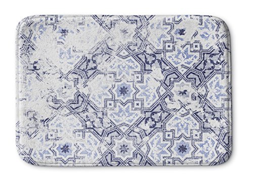 KAVKA Designs Sandoval Blue Memory-Foam Bath Mat, (Blue/Ivory) - NAVAJO Collection, Size: 17x24x0.75 - (MGTAVC2025SUMS)
