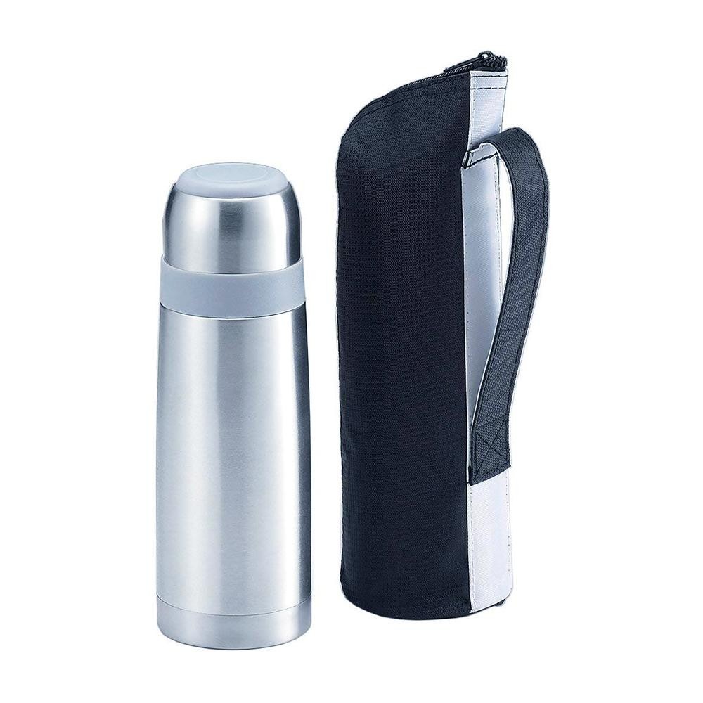 しっかり保温・保冷できるので季節問わず、使うことができます。 製造国:中国 素材・材質:本体内側:18-8ステンレス本体外側:ステンレススチールフタ:ステンレススチール・ポリプロピレン中栓:ポリプロピレン・スチロール樹脂パッキン:シリコーンゴムポーチ:ポリエステル 商品サイズ:(約)φ67×205mm 重量:約230g 仕様:食洗機不可 ※サプライヤー直送品 ご注文後3~4営業日後の出荷となります【商品名】サプリカ ポーチ付ステンレスボトル 0.35L SU-05 1001303