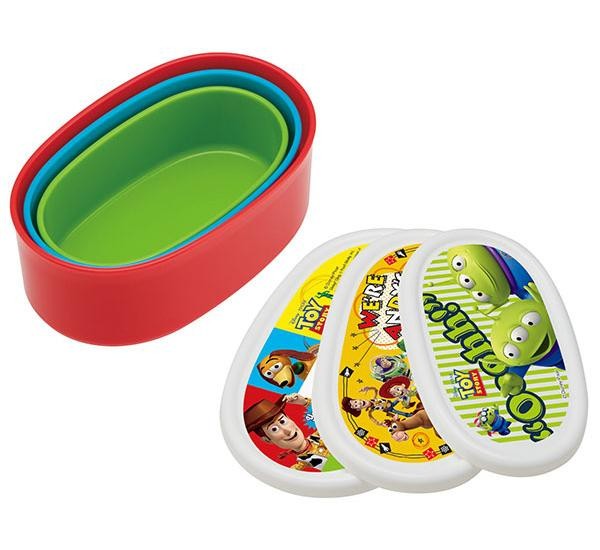 3サイズの保存容器が入れ子式に収納できてコンパクトに!!フタを外して電子レンジ使用可能で、お弁当箱としてもご使用いただけます。 |