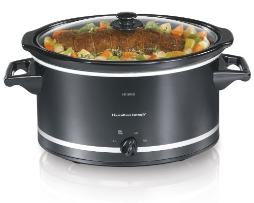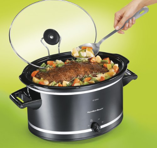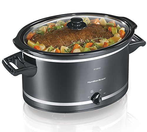 Hamilton beach, 8 QT, oval slow cooker with mess free lid rest, full grip handles, removable dishwasher safe crock, high, low, & keep warm settings.