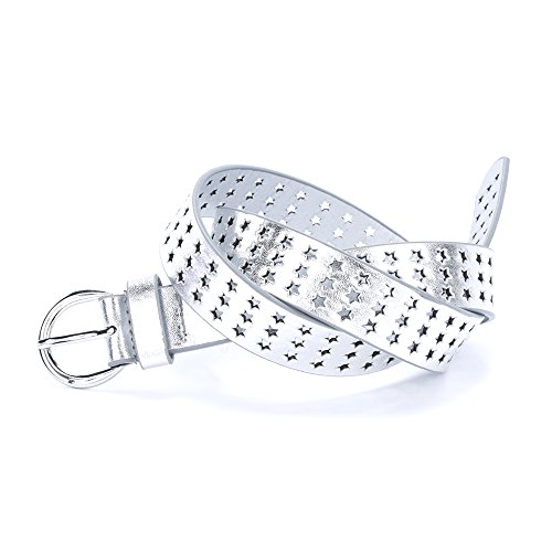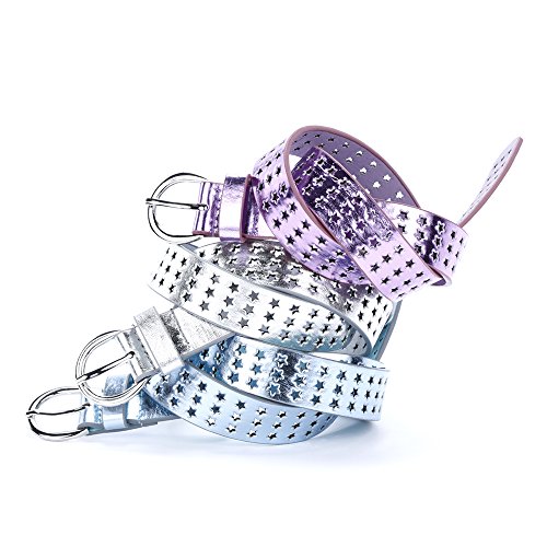-. Title : Girls Metallic Mini Stars Perforated Leather Belt