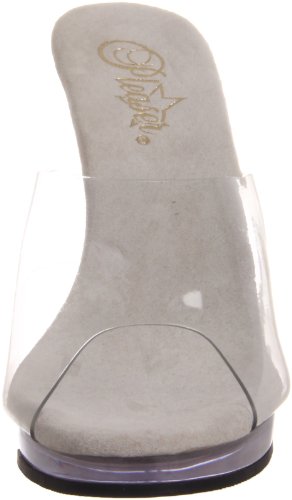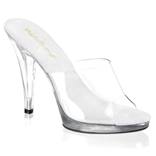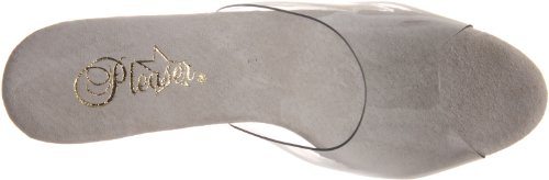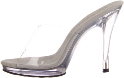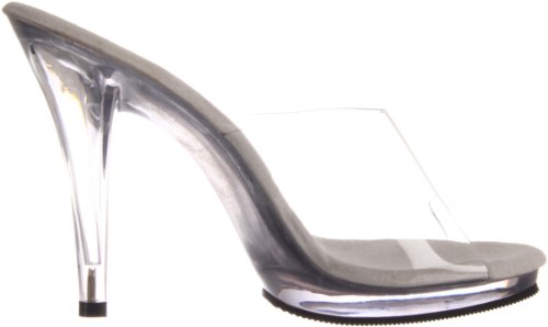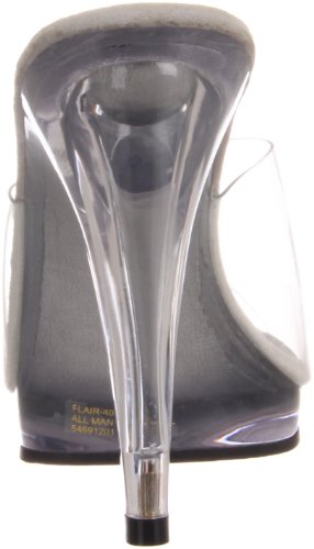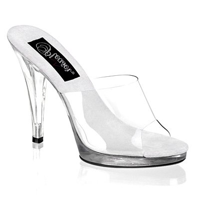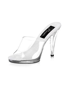 Amazon.com Product Description Simple? Yes. Boring? No way. The Flair slide sandal from Pleaser boasts a grippy rubber sole and a translucent upper so all you see are curves brought to you by the 4.25-inch heel and .5-inch platform. The result? Proof that less is sometimes more in Pleaser. 0