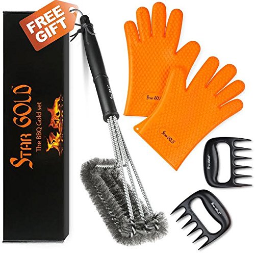 Buy BBQ Silicone Gloves / Cooking / Oven / Kitchen + Meat Claw / Shredder Get 18" BBQ Cleaning Brush - All in a gift Box. N.1 Smoker Accessories set