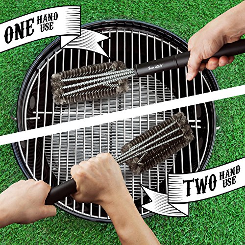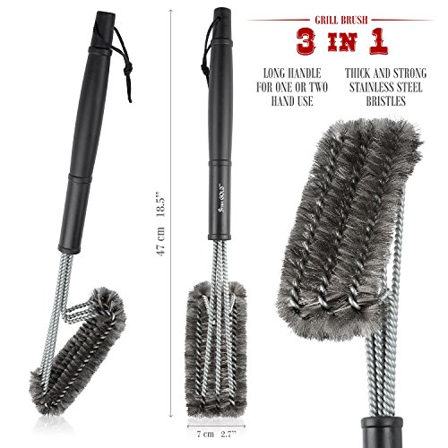 MULTIPLE ANGLED WIRED CLEANER - Perfectly shaped bbq grill cleaning brush to reach every greasy corner. Non-bending 10” handle for added control. Keep your fingers safe!
