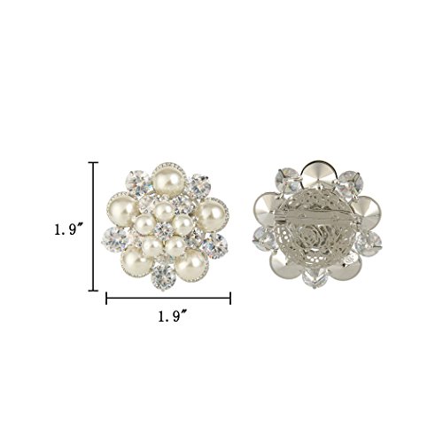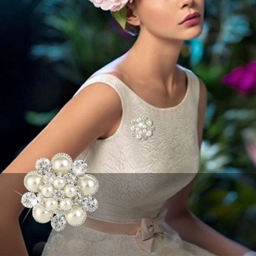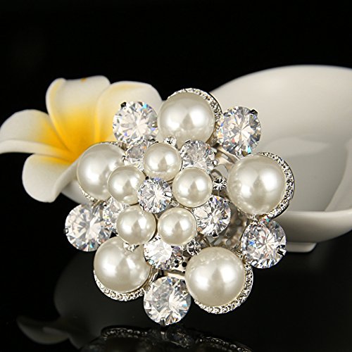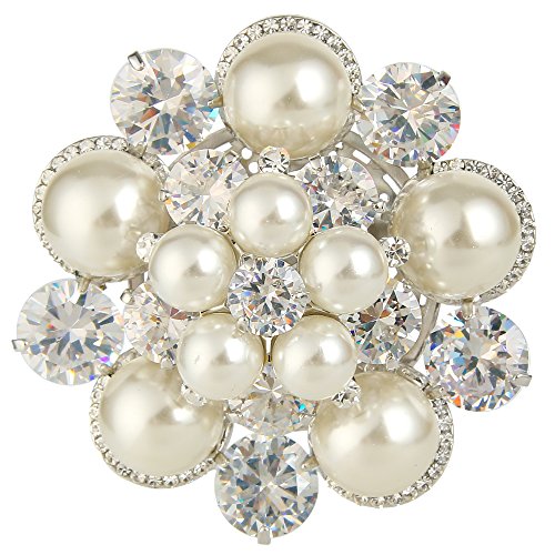 -. Title : EleQueen Women's Silver-tone Cubic Zirconia Cream Simulated Pearl Crystal Bridal Flower Brooch Clear