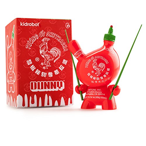 Sketrachais based on Sket One's custom condiment toy project also featuring the famous Sriracha hot sauce. Now available in 3 inch form and apparently..there is a clear chase version as well! Now that's hot. Nice one, Kidrobot!