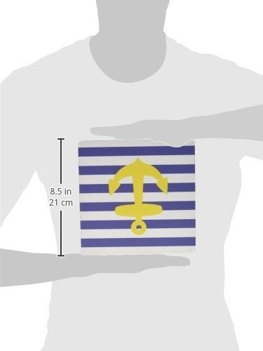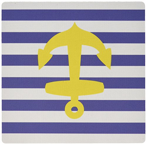3dRose Retro Nautical Golden Yellow Anchor, navy blue sailor stripe - Mouse Pad, 8 by 8 inches (mp_57478_1)