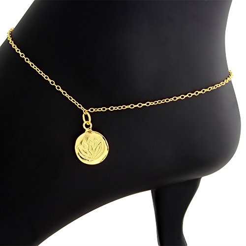 -. Title : Azaggi Sterling Silver Anklet Lotus Medallion