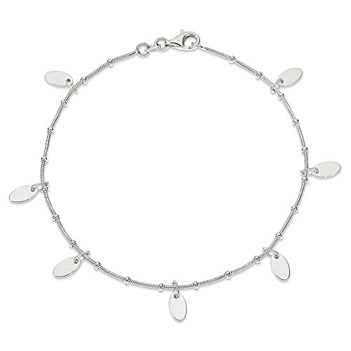 -. Title : Sterling Silver Snake Chain With Oval Disk Anklet 10 Inch