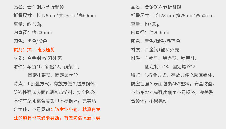 自行车锁防盗山地车折叠关节抗12吨液压剪骑行装备单车配件