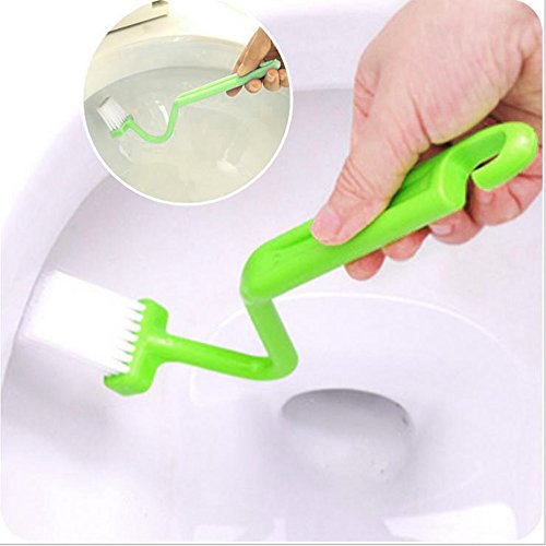 COSMOS Pack of 3 Toilet Brush S Shape Handle Family Sanitary Cleaning Scrubber Curved Cleaner Toilet Brush, Random Color