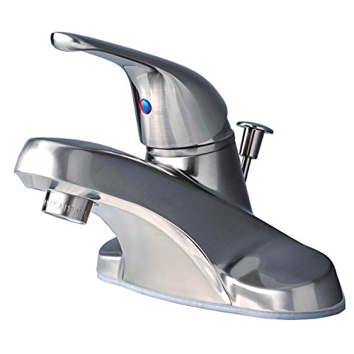 -. Title : Builders Shoppe 2040BN Single Handle Centerset Lavatory Faucet with Pop-Up Drain, Brushed Nickel Finish