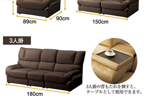 【商品名】本革ハイバック木飾りソファー 【3: 3人掛け】 分割式/テーブル付き ダークブラウン
