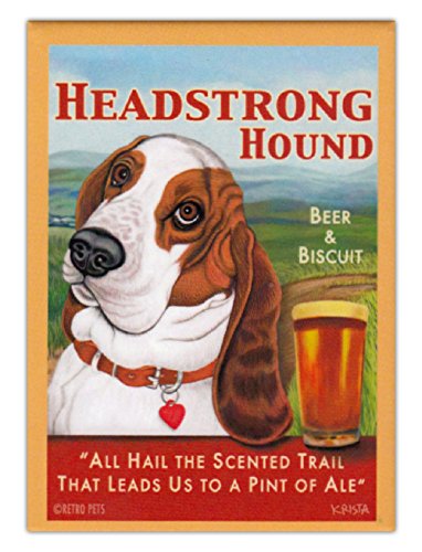 Retro Dogs Refrigerator Magnets - Basset Hound Beer - Vintage Advertising Art