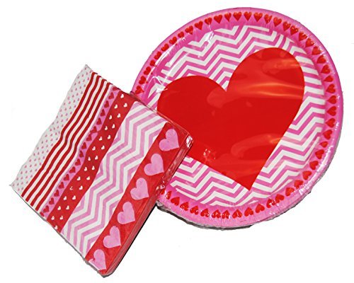 Valentine Hearts Red and Pink Paper Plates and Napkins for 18