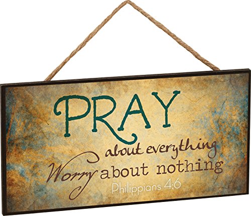 Pray About Everything Worry About Nothing Philippians 4:6 Wooden Sign with Jute Rope Hanger