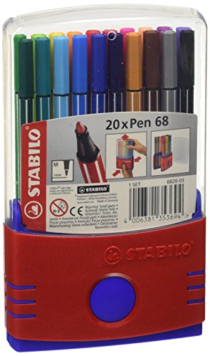 -. Feature : 20 pack Stabilo 68 pens set - water-based - bullet fiber tip - assorted colors / Comes with a plastic case that folds into a stand-up easel / Hexagon shape for no-roll confidence -Non-smudging - odorless / Will not bleed - dissolve toner or permanent marker ink / Perfect for layouts - details and sketching