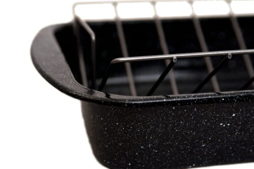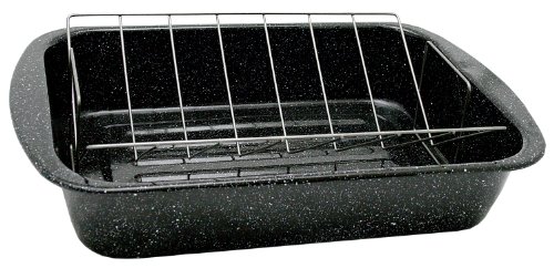 Granite Ware Open Rectangle Roaster with Non-Stick V-Rack, 19-Inch
