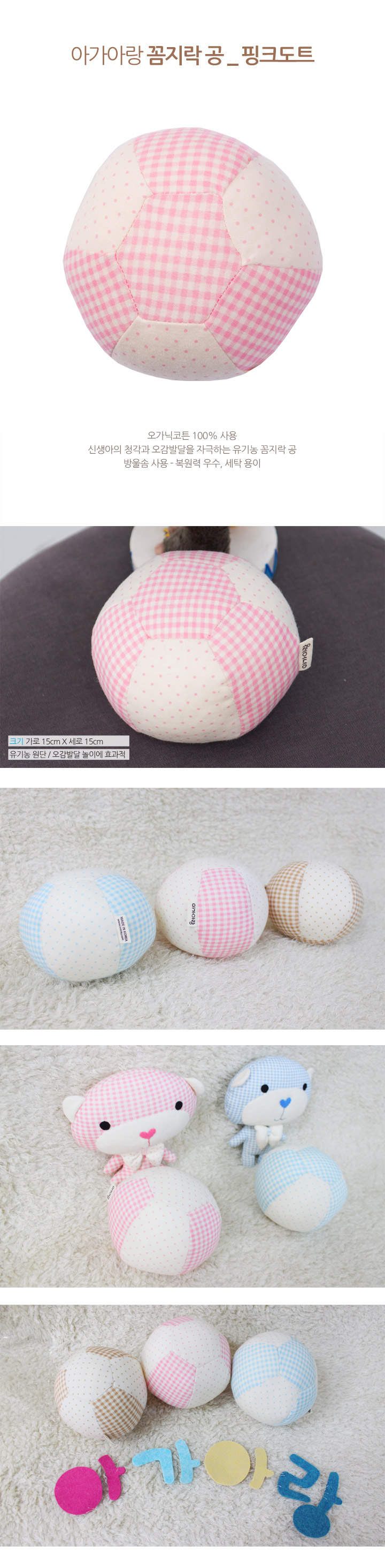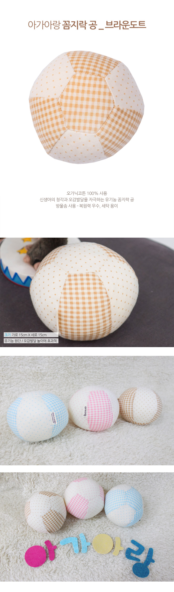 | 규격/크기 | 15x15 | 재료/재질 | 겉감-오가닉코튼100%/충전재-방울솜(폴리에스터100%) |