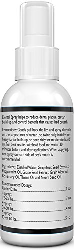 The spray is easy to apply directly to the tooth and gums every day. Simply spray in your pet's mouth 1 to 2 times daily, ideally before bedtime and this formula will work systematically through your pet's saliva. When used properly, improvement is seen within 3-8 weeks, including better breath and a reduction or softening of plaque and tartar.