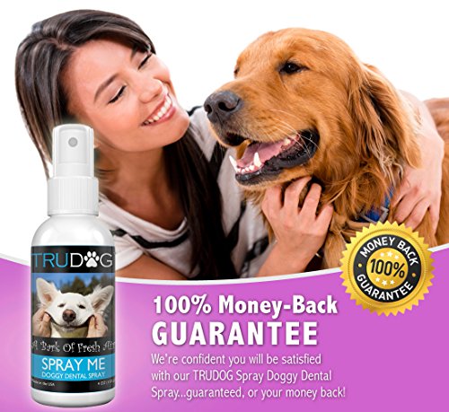 Using TruDog's Spray Me for dogs every day helps freshen breath while controlling plaque, tartar, and bacteria. All of this while also supporting tooth and gum health!