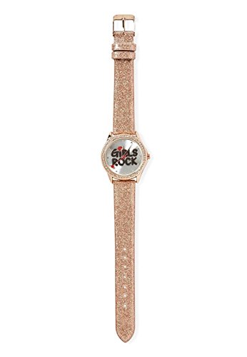 -. Binding : Apparel -. Brand : Justice -. Color : Goldtone -. Department : girls -. EAN : 0700811231555 -. Feature : Empower her with sparkling style / Shimmering golden watch with empowering graphic on the face / Adjustable buckle strap for a fab fit -. PackageQuantity : 1 -. ProductGroup : Apparel -. ProductTypeName : ACCESSORY -. Size : Juice -. Title : Justice Girls Rock Sparkle Watch -. UPC : 700811231555