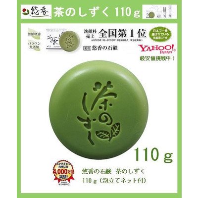 悠香(ゆうか) お茶石鹸 茶のしずく 110g商 品 名悠香 茶のしずく 石鹸 110g 容 量 悠香 茶のしずく 石鹸 110g・110g 特 徴 悠香 茶のしずく 石鹸 110g・美肌に良いと言われるカテキン。・肌へのやさしさにこだわり、厳選した天然成分を使用しています。 有 効 成 分 悠香 茶のしずく 石鹸 110g・グリチルリチン酸2K