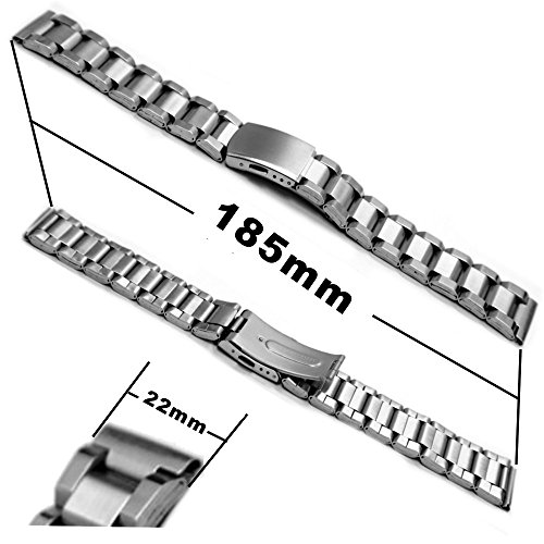 -. Feature : Band Material: Stainless Steel Band Width: 22mm Length 1: 80mm Length 2: 105mm Band Color: Silver Buckle Material: Stainless Steel