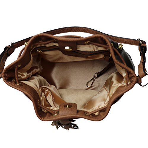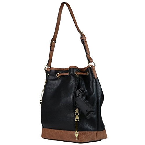 SPACIOUS INTERIOR - Drawstring closure with magnetic snap / fully lined 100% satin interior features two open slip pockets and a large zippered privacy pocket / interior lanyard with swivel snap for keys