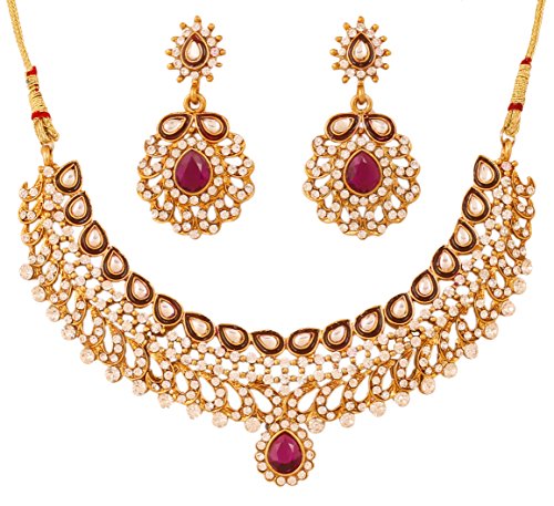-. Feature : BRAND : Touchstone is the Premium Fashion Jewelry Brand Of India since 20 years. They have been recreating the exquisite treasure of Indian Heritage Jewelry and retailing across India. Now available in the U.S.A. at your doorstep. PACKAGING In Branded Box perfect for gifting. Extra stones and Ear push. / OCCASION Will add luster when worn for a wedding, engagement, party, prom and any special occasion. Will enhance special days like Christmas, Birthdays, Anniversaries, Valentine's Day, and Mother's Day. A Beautiful & Memorable Gift for all occasions. / SPECIFICATIONS : Necklace circumference 9.50 inches. Extendable with soft tassel up to 17.50 inches. Earrings weight (single) 8 gms. Earrings length 2 inches. Earrings width 1 inch. "This is in a special dark gold plating to recreate the look of antique jewelry". / MATERIAL & TECHNIQUE : Stainless steel Ear Posts. Special Long lasting Plating with Lacquer finish. Recreates Studded Diamond Jewelry. Hand Finished. Meenakari Enamel work, a signature feature of Indian Jewelry. Made of Long lasting Alloy Metal and good quality Rhinestones. Embellished with Faux ruby. With Exquisite Enamel Work. / 100% RISK FREE PURCHASE; Money Back if not delighted; Enjoy Long lasting plating, handcrafted finish and attention to detail.