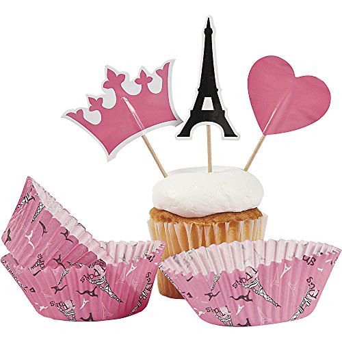-. Title : Fun Express Perfectly Paris Baking Cups With Picks - 100 Pieces