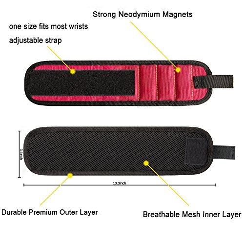 Kingrise Magnetic Wristband Super Strong Magnets Embedded Holder for Screws ,Nails, Bolts,Drill bits, Small Metal Tools, Best Tool Gift for DIY Handyman,Father,Husband,Boyfriend,Men,Women