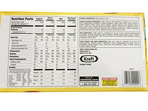- Includes Original, BBQ, Ranch, and Chili Picante con Limon flavors Original - Original CORN NUTS is about as authentic as a snack can get. With real corn kernels and real corn flavor, the only way we could cram more corn into CORN NUTS would be by using the husks as packaging. And don't think we're not working on that! BBQ - The smoky sweet flavor of your favorite down-home barbecue joint now comes in a bag. BBQ CORN NUTS is everything you love about grilling mixed with our passion for a bona fide corn snack. Just...in a bag