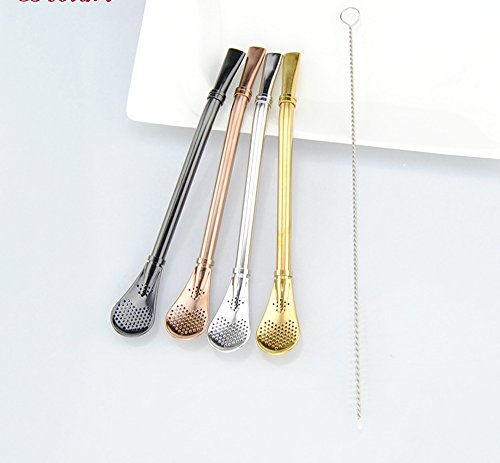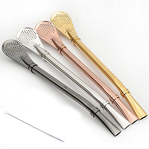 Hihelp 4 PCS Stainless Steel Straws Yerba Mate Bombilla Drinking Straws Free Cleaning Brush Include