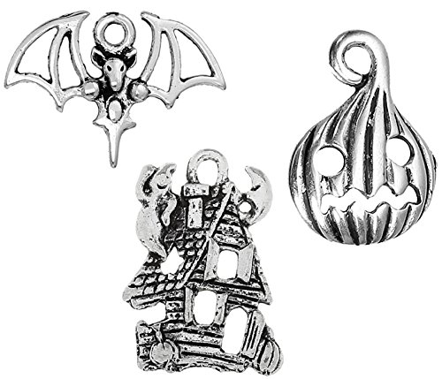 Halloween Charm Mix by JGFinds, 120 Pack (Bat, Pumpkin Face, Haunted House)