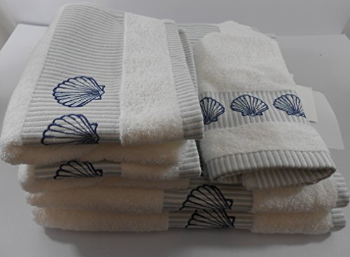 Home Embroidered Seashell Turkish Towel Set 6 Pieces