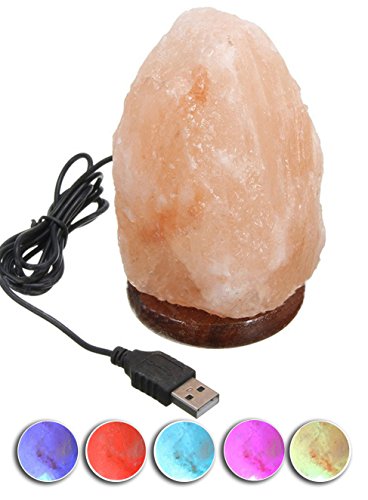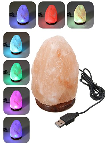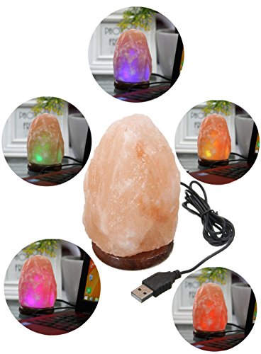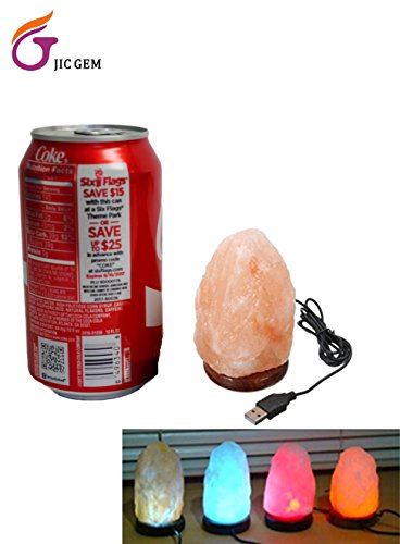 Natural USB Himalayan Salt Lamp Crystal Salt Rock Mini Hand Carved Lamp with Multi-Color LED Changing Bulb,By JIC Gem
