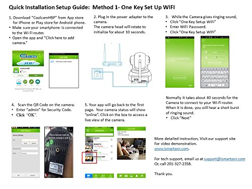 -. Title : Coolcam iSmart Wireless WiFi IP Camera Smartphone CCTV Security Surveillance 2way Audio Camera with Night Vision and Motion Detect Free P2P Cloud Connection Service with QR Code