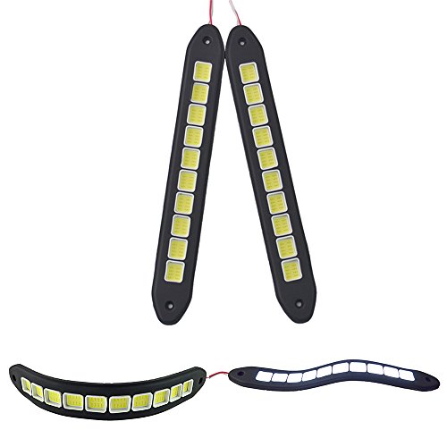 Rayhoo 2 pcs Set Waterproof IP67 Rubber Flexible High Power 6W 12V Flip Slim Chip COB LEDs DRL Daylight Driving Light Daytime Running Light For Car Vehicle Universal (Straight Line, White)