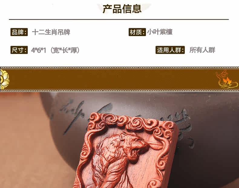 开光天然小叶紫檀属虎者十二生肖吊坠男女化太岁开运物